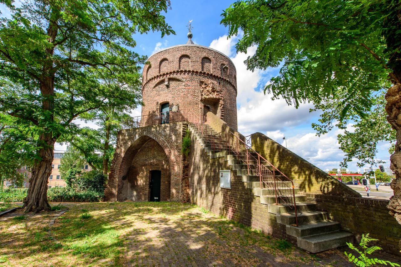 De rattentoren in Roermond tussen de bomen op een zonnige dag